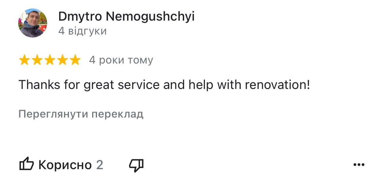 Thanks for great service and help with renovation!