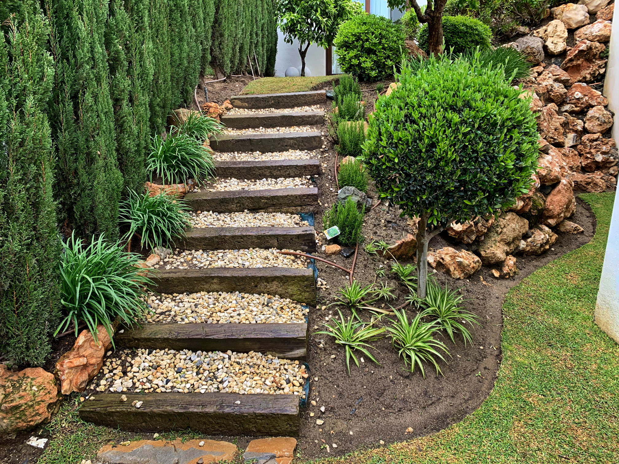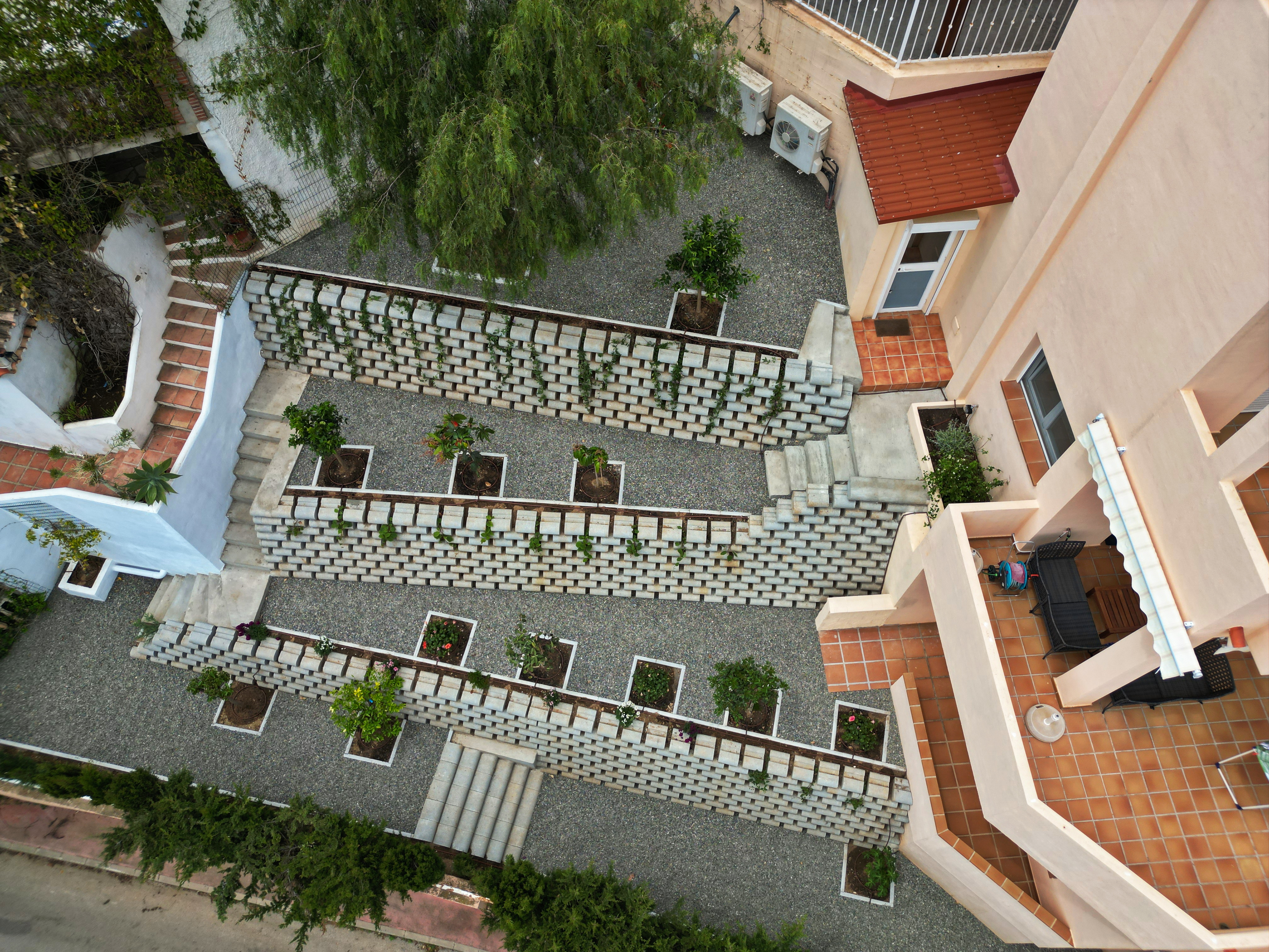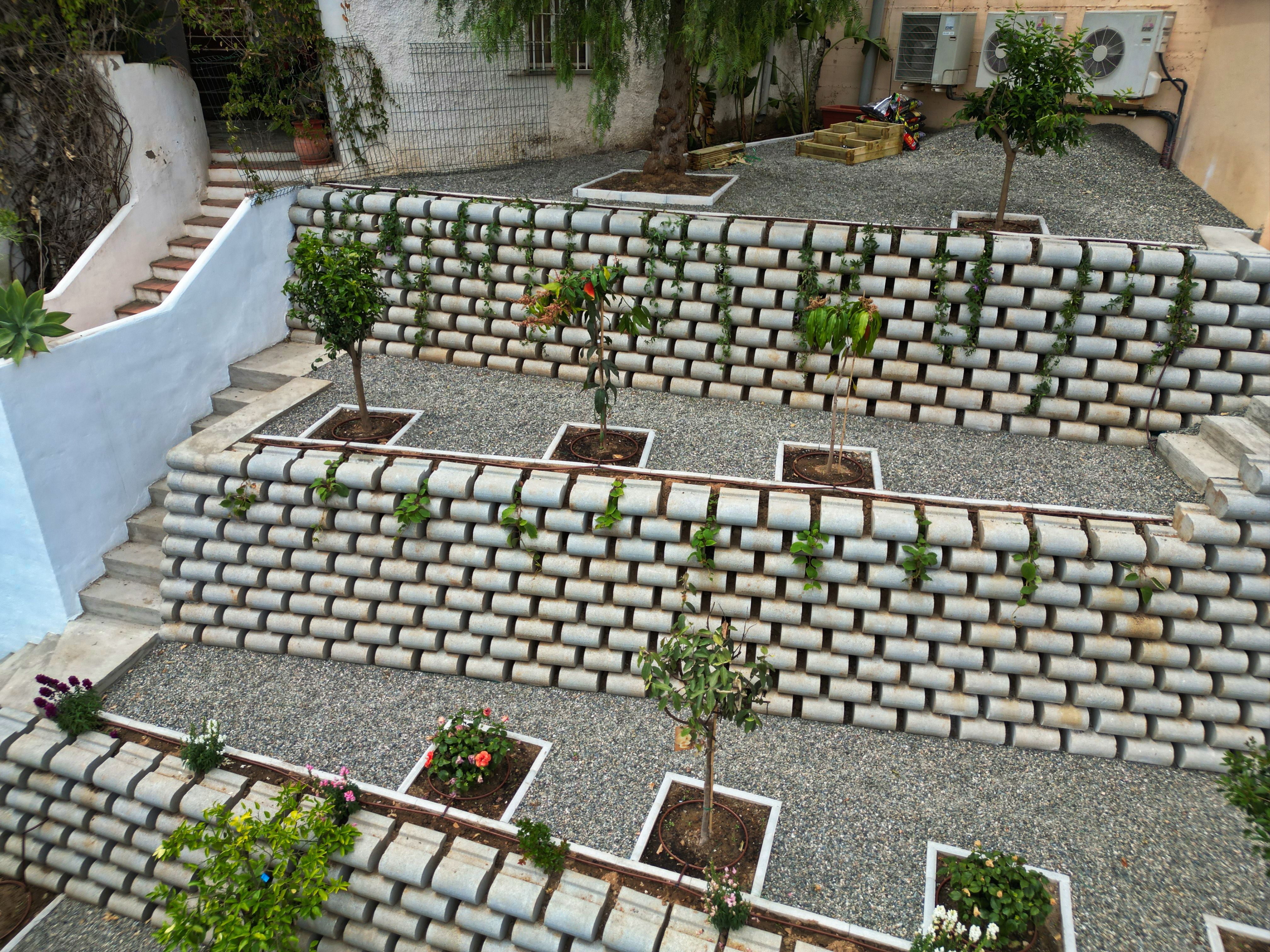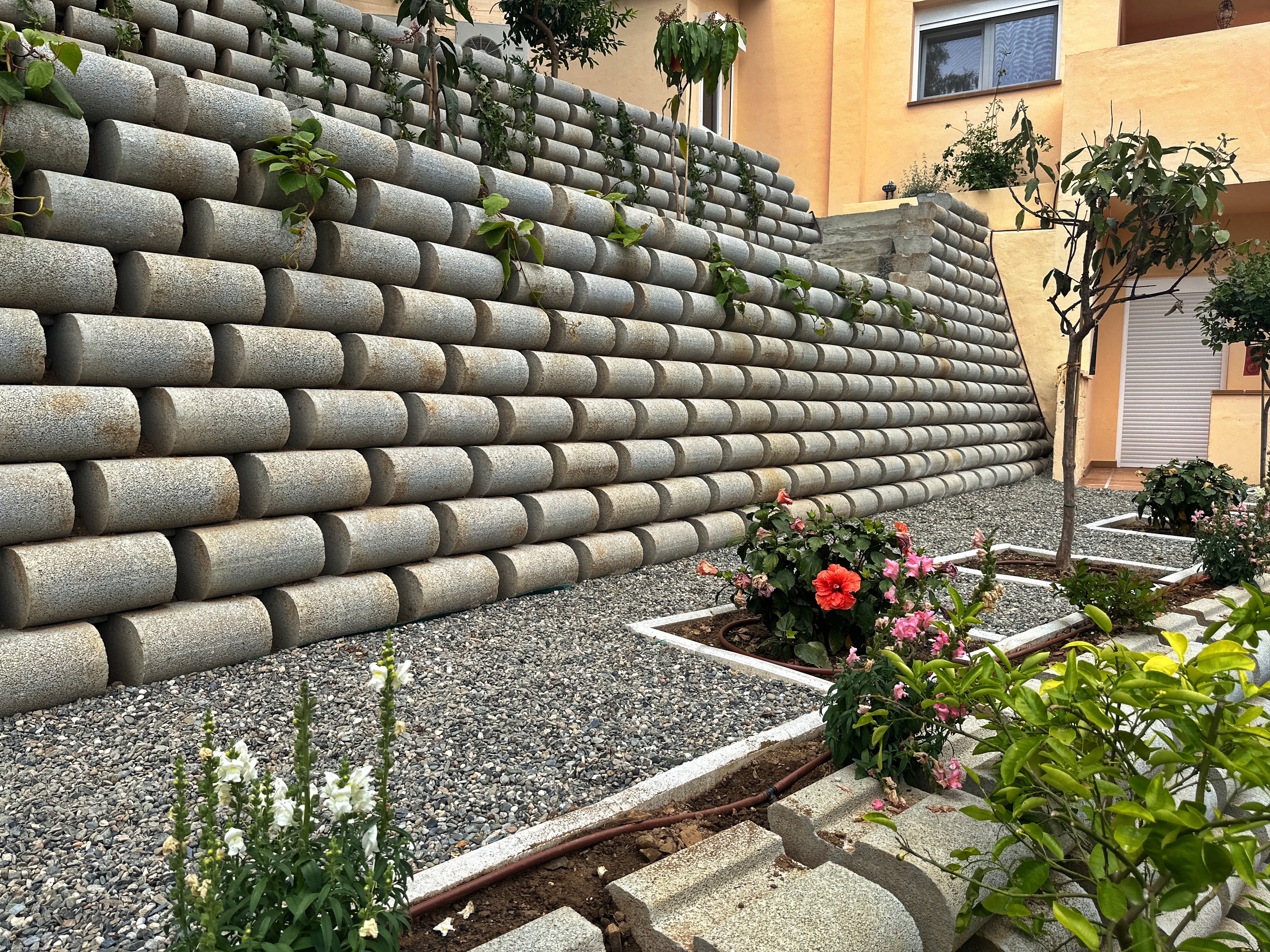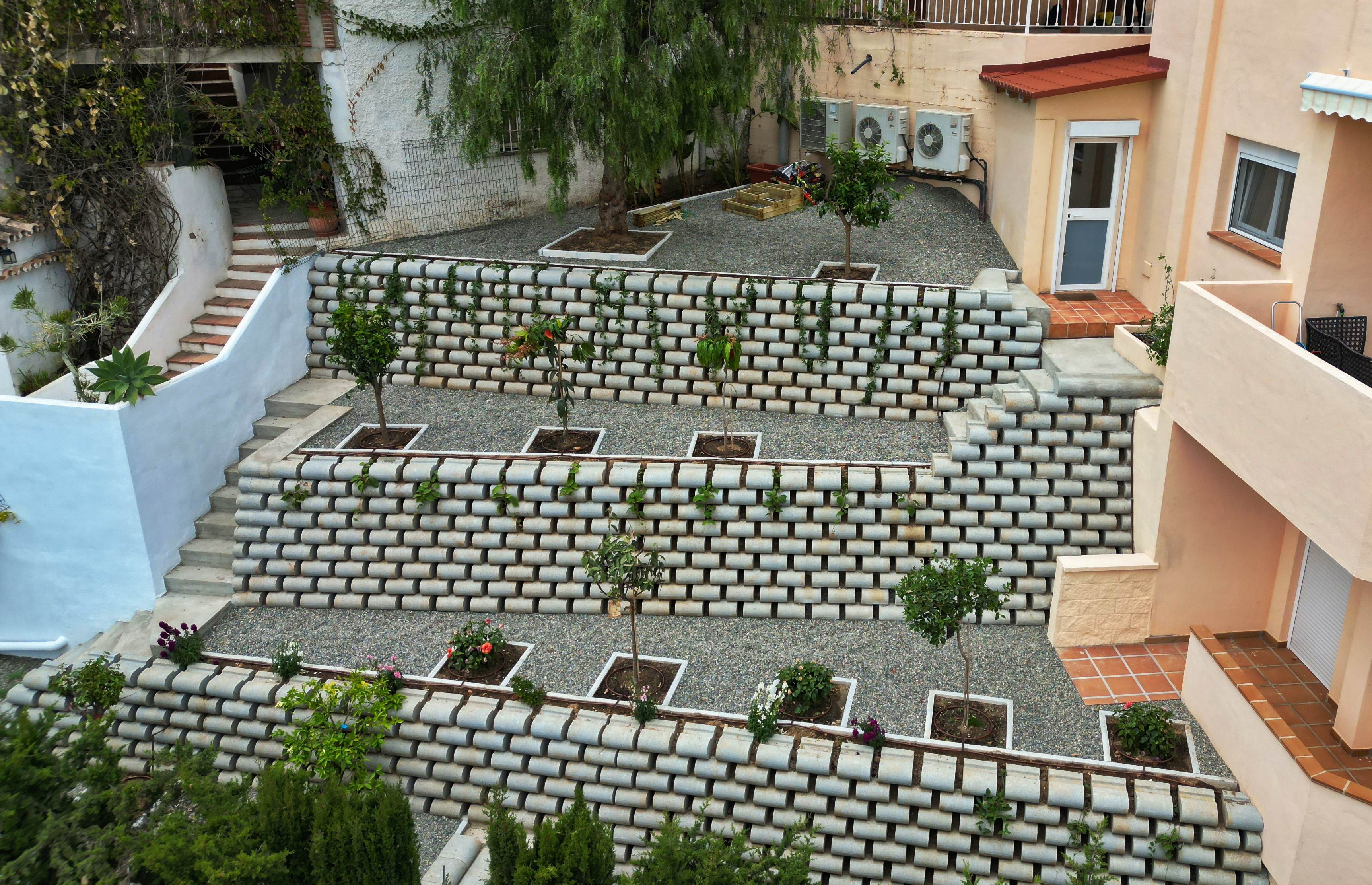 Экомур создает гармоничный баланс между устойчивостью и красотой, превращая подпорную стену в уникальный элемент ландшафта, который не только укрепляет рельеф, но и создает впечатляющий природный акцент.